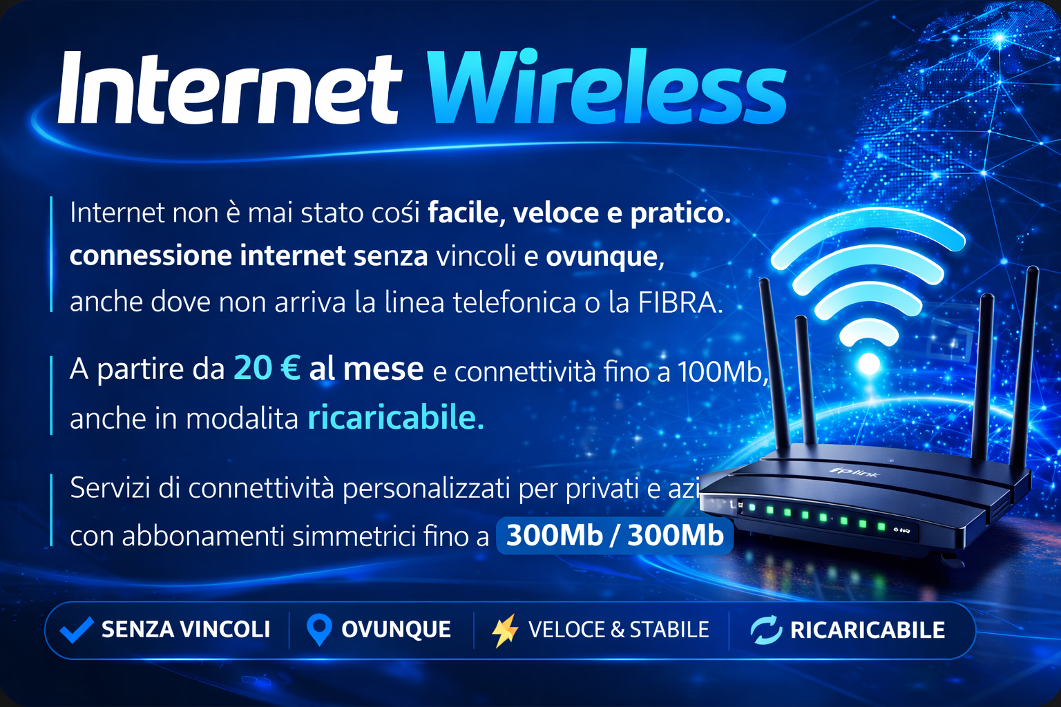 Grazie alle nostre connessioni senza linea telefonica, possiamo offrirti il telefono di casa in tecnologia VOIP senza canone, anche in modalità ricaricabile. E puoi mantenere il tuo numero grazie alle compagnie top del settore che collaborano con noi.